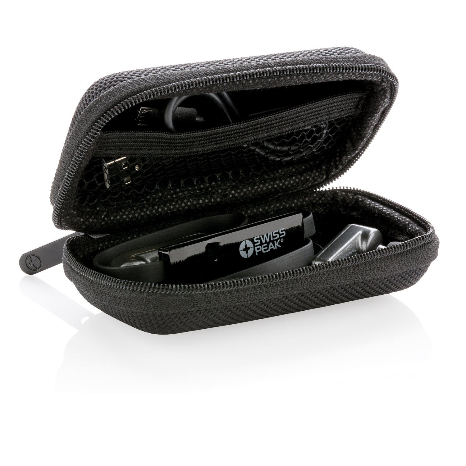 Замена артикула P326. 392. Беспроводные наушники «капельки» Swiss Peak со стандартом подключения BT 4. 0 – идеальный вариант для использования на улице или во время занятий спортом. Износостойкие наушники в корпусе из ABS-пластика и не спутывающийся провод из TPE с защитой от пота и влаги позволяют наслаждаться любимой музыкой в любых условиях. Время воспроизведения без подзарядки составляет до 4 часов. Полная зарядка аккумулятора занимает не более одного часа. В комплект входят две дополнительные насадки для наушников разных размеров. Наушники поставляются в стильной сумке Swiss Peak и подарочной коробке.