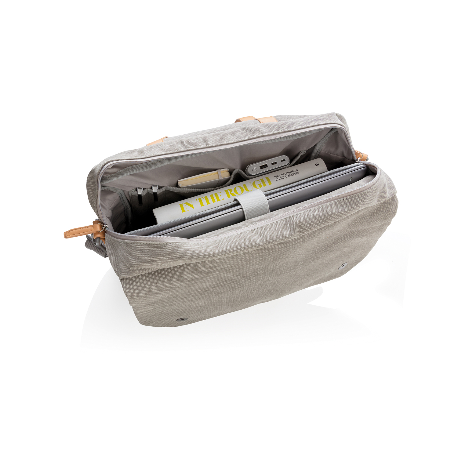 Воспользуйтесь для транспортировки вашего ноутбука этой экологичной и прочной холщевой сумкой. Мягкое отделение надежно защитит ваш компьютер, а дизайнерские вставки из экокожи обеспечат элегантный внешний вид изделия. Сумка подходит для ноубуков размером до 15. 6", а также для документов и планшетов. На сумке предусмотрен съемный регулируемый плечевой ремень. Материал изделия не содержит ПВХ.