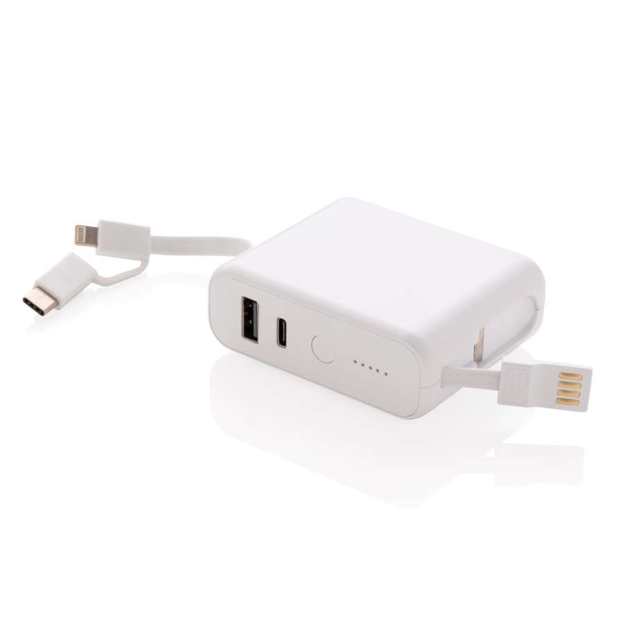 Аккумулятор белого цвета c 5 светодиодными индикаторами, упакован в коробку XD collection.