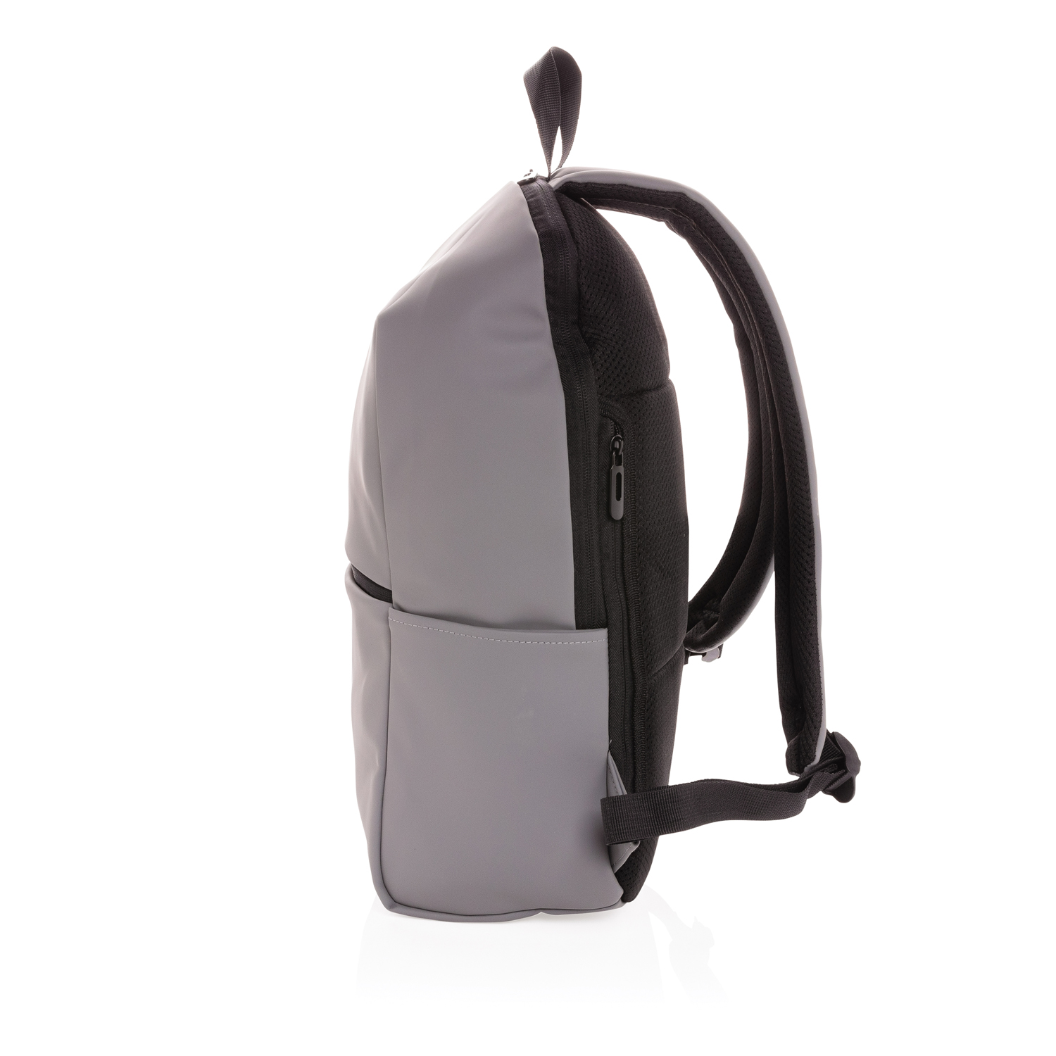 Минималистичный рюкзак из гладкого полиуретана с подкладкой и дополнительным карманом для ноутбука 15, 6 дюймов. Также предусмотрены 2 внутренних кармана и 2 петли для ручек. Задняя стенка из сетчатого материала, регулируемые лямки. Снаружи — 100% полиуретан, внутри — полиэстер 210D. Без ПВХ.