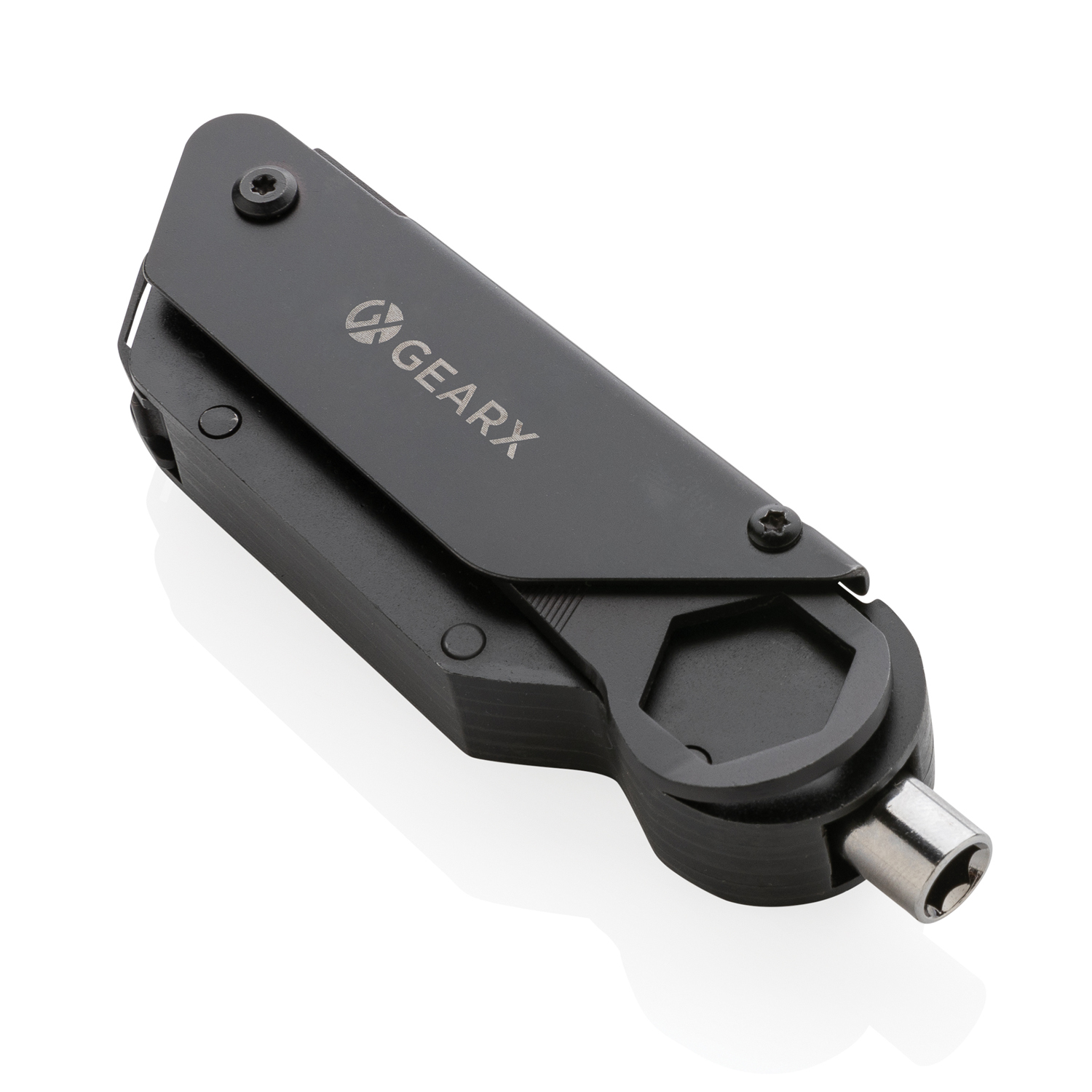 Если вам нужно что-то отремонтировать на вашем велосипеде, убедитесь, что вы делаете это стильно. Высококачественный велосипедный мультитул Gear X сочетает в себе все инструменты, необходимые для быстрого ремонта вашего велосипеда. Стильный черный корпус из алюминия отлично сочетается с инструментами из высококачественной нержавеющей стали 420 черного цвета. Надежные инструменты Gear X рассчитаны на долгий срок службы. 16 функций включают в себя: держатель для бит, встроенную кассету с битами (S2, 5, S2 5 мм, S2 4 мм, S3 3 мм, S2 6 мм, S2 PH2), ключ для спиц 3, 4/3, 3, нож для коробок, адаптер, многофункциональный 18-мм ключ с замком, второй многофункциональный ключ 15/10/8 мм с замком, напильник. Уровень твердости бит 60-62 HRC. Уровень твердости инструментов 40-45 HRC. Поставляется в стильной подарочной коробке.