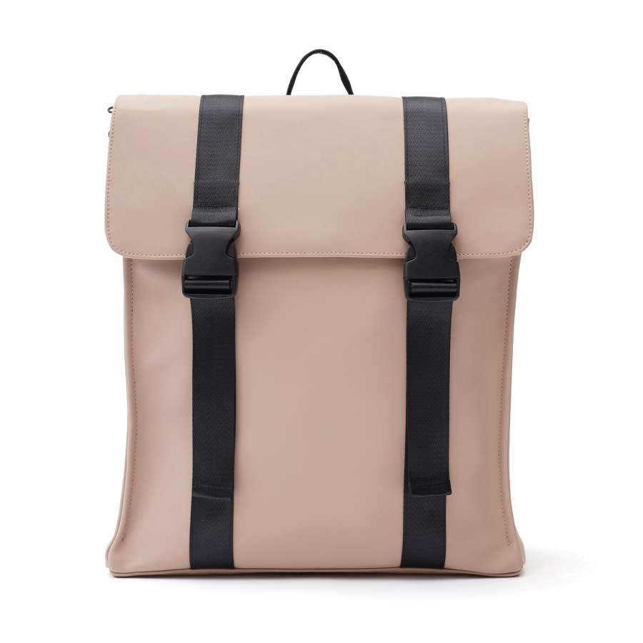 Рюкзак изготовлен из приятного на ощупь водоотталкивающего полиуретана с покрытием soft-touch. Он не боится дождя, брызг и легко очищается. У рюкзака два внутренних отделения: основное и дополнительное, для ноутбука или планшета, с мягкой подкладкой и ремнем на застежке-липучке. Телефон, наушники или другие мелочи можно расположить в трех карманах, один из которых — внутри. Все карманы застегиваются на молнии. Снаружи рюкзак дополнительно фиксируется застежками. Лямки, также изготовленные из полиуретана, можно отрегулировать по длине.
