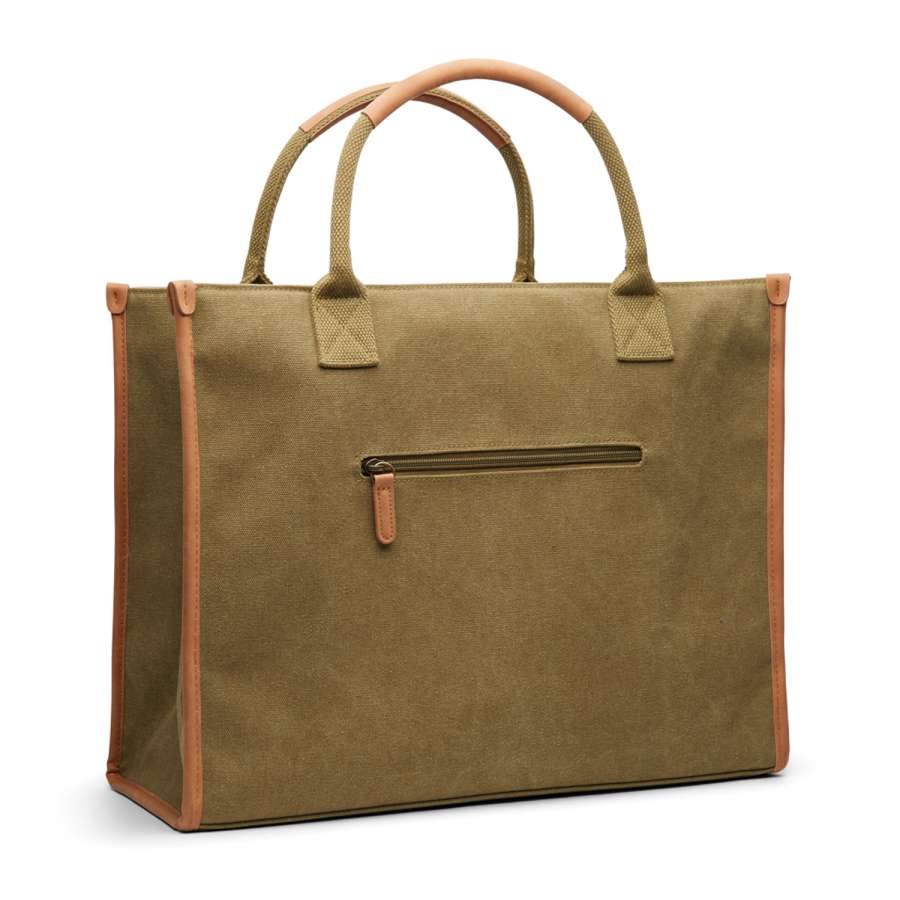 Деловая сумка-тоут отлично подойдет для рабочих будней или поездок. Стильная и вместительная, она отличается контрастной отделкой — стильным акцентом, привлекающим внимание. В сумке есть отделение с мягкой подкладкой — для ноутбука или планшета диаметром до 13’’. Основное отделение просторное, в него поместятся документы, зарядные устройства, кошелек и другие необходимые вещи. Снаружи задней стенки есть небольшой кармашек на молнии для ценных мелочей. У сумки короткие ручки с имитирующей кожу отделкой. Сумка изготовлена из переработанного канваса: на 70% он состоит из переработанного хлопка, а на 30% — из переработанного полиэстера. Все переработанные материалы имеют сертификат RCS, который гарантирует полный контроль цепочки поставок переработанных материалов.