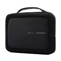 Сумка для ноутбука от XD Design станет надежным спутником, куда бы вы ни отправились. Это настоящее воплощение стиля и функциональности. Она изготовлена из переработанных пластиковых бутылок с водоотталкивающим покрытием, поэтому вашей технике не страшны ни дождь, ни снег. Внутри — мягкая подкладка из приятного на ощупь флиса, которая гарантирует безопасность ноутбуку. Несмотря на компактные размеры, в сумку поместятся зарядные устройства, мышь и необходимые в поездке вещи. На задней стороне есть дополнительный карман, а удобный плечевой ремень можно снять при необходимости. Сумка подходит для ноутбуков диагональю до 14’’. Сертифицировано AWARE™. Наличие индикаторных частиц AWARE™ подтверждает, что мы действительно используем переработанные материалы. 2% с продажи каждой вещи, отмеченной сертификатом AWARE™, мы перечисляем в поддержку всемирной организации Water. org.