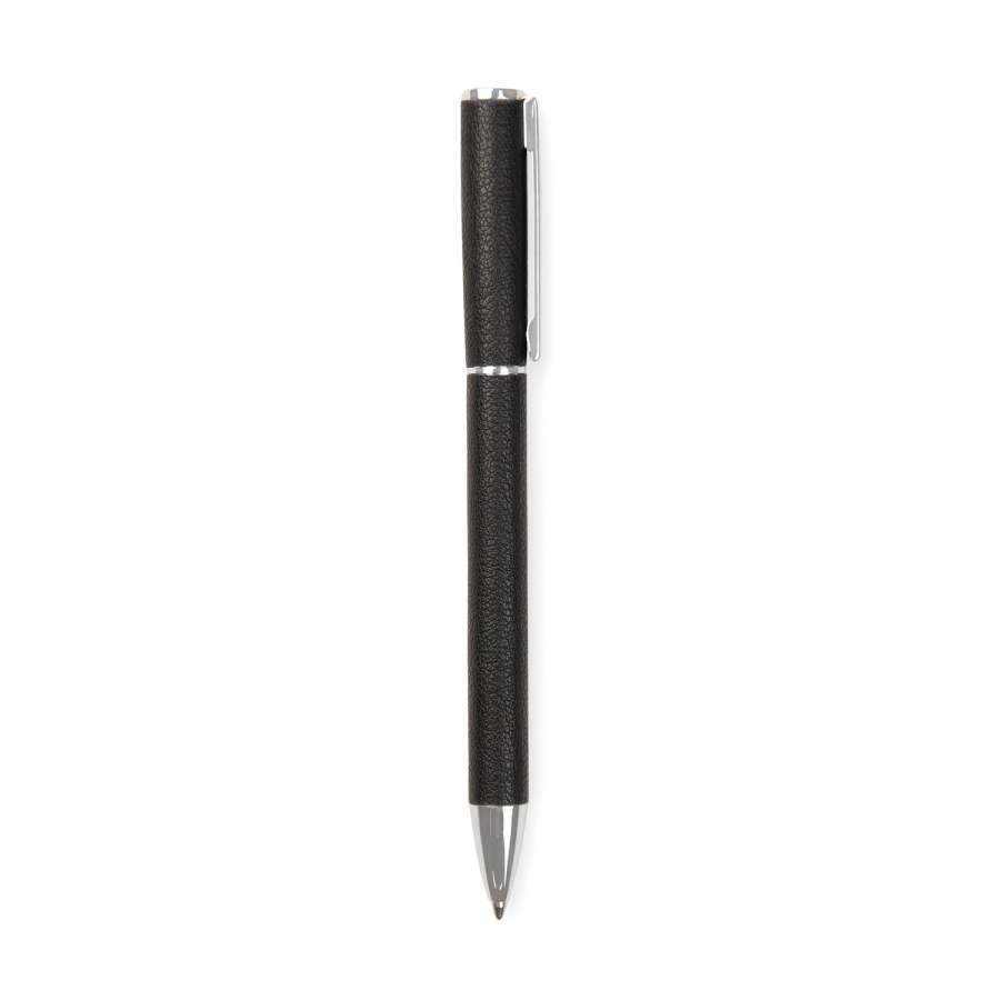Ручка Timo — это классика в новом прочтении от VINGA. Минималистичный дизайн сочетает в себе классические черты шариковой ручки и необычную фактуру кожи на корпусе. Ценители необычных письменных принадлежностей точно оценят такой подарок! Ручка изготовлена из переработанного алюминия с деталями из латуни и покрытием из полиуретана. Внутри — синие немецкие чернила Dokumental, которые гарантируют длину письма до 1 200 метров. Толщина письма — 1 миллиметр. Сертифицировано RCS. Эта сертификация полностью контролирует путь поставок переработанных материалов и гарантирует их наличие в изделии.