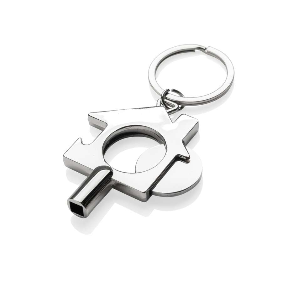 Брелок — универсальное дополнение к любому подарку. А если это многофункциональный и экологичный брелок, который можно украсить креативным брендированием, приятные впечатления от него будут гарантированы! Кольцо для ключей изготовлено из переработанного цинка и дополнено подвеской в виде домика. Это не простая подвеска: она выступает в роли ключа для радиатора, открывалки для бутылок и монетки, которая пригодится в магазинах — чтобы взять тележку. Компактный брелок выглядит стильно и необычно. Содержание переработанных материалов составляет 80% от общего веса изделия. Сертифицировано RCS. Эта сертификация полностью контролирует путь поставок переработанных материалов и гарантирует их наличие в изделии.