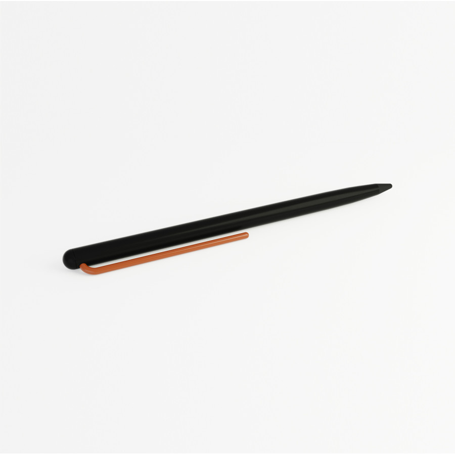 Инновационный, совершенно необычный карандаш с цельным алюминиевым матовым корпусом черного цвета, ярко-оранжевым клипом и пишущим наконечником из материала GrafeeX. GrafeeX - это запатентованный инновационный материал, полученный в результате спекания мелких частиц графита при высоких температурах. То есть он пишет, как обычный графитовый карандаш, но из-за высокой плотности материала крайне экономно расходуется, и его хватает очень надолго. Карандаш вкладывается в элегантный темно-серый чехол с контрастной прострочкой в цвет клипа, сшитый вручную из рециклированной кожи. GrafeeX станет идеальным помощником в повседневной жизни: для заметок, для набросков или просто для записи идей на бумаге.