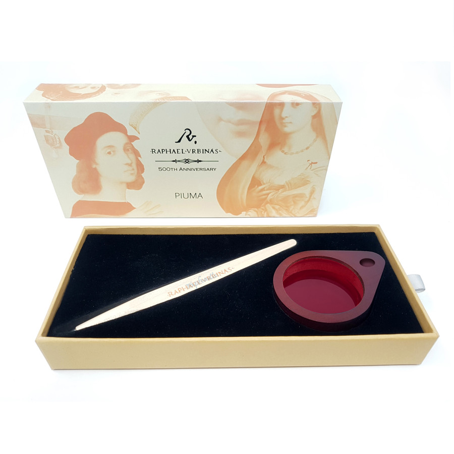 Лимитированная коллекция бренда Pininfarina в память о Рафаэле, одном из трех титанов эпохи Возрождения, приуроченная к 500-летию его смерти. Рафаэль с раннего возраста узнает, что красота - это не абстрактное и инстинктивное понятие, а результат глубокого изучения и внимания к каждой детали. Он наблюдал за великими художниками того времени и постигал их тайны. Человек огромной культуры, сочетающейся с необычайными исполнительными и техническими способностями, он обладал великим чувством равновесия и композиции. Наибольшую известность ему принес талант использования цвета, поэтому дизайнеры Pininfarina поиграли с цветами и выгравировали на корпусе ручки автограф Рафаэля, почти полностью скрытый для невооруженного глаза. Он становится видимым только при использовании фильтра цвета, входящего в набор. Ручка Pininfarina PIUMA - вечная ручка динамической формы в виде гусиного пера, сделана в память Кодекса о полете птиц учителя Рафаэля Леонардо да Винчи, целью которого было понять тайну полета. Она полностью сделана из дерева груши и весит всего 7 гр при длине 15, 5 см. Вечная ручка имеет необычный пишущий узел в виде наконечника Ethergraf, который изготовлен из сплава металлов по запатентованной технологии. Он не содержит свинец и алюминий, производится вручную итальянскими мастерами и практически не расходуется за десятилетия использования. При соприкосновении с поверхностью бумаги, происходит химическая реакция и наконечник оставляет серебристый след, который напоминает цвет графитового карандаша, но обладает большей стойкостью. Идеально пишет на каменной бумаге. Набор упакован в подарочную коробку размером 215х100х30 мм.