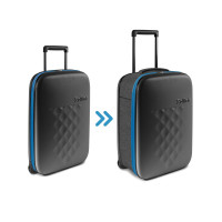 Складной легкий чемодан Rollink Earth черного цвета с синей молнией. Размер 55х40х20 см. В сложенном виде толщина составляет 5 см, с колёсами 8, 5 см. Объем 40 л. Вес 2, 2 кг. Жесткие стенки сделаны из ударопрочного полипропилена. Бока мягкие, из полиэстера с водоотталкивающей пропиткой. Внутри два откидывающихся жестких клапана на дне и вверху чемодана, крепятся липучками и сохраняют форму чемодана в собранном виде. Боковой easy access карман 12х19 см на липучке для документов и телефона. Удлиненная надежная выдвижная телескопическая ручка из алюминия с несколькими уровнями фиксации высоты ручки (от пола 80/94/104 см) для людей разного роста и удобная мягкая ручка сверху чемодана, чтобы было удобно нести его в руках. 2 колеса со специальным покрытием и подшипниками для более плавного и бесшумного передвижения. Надежная молния синего цвета.