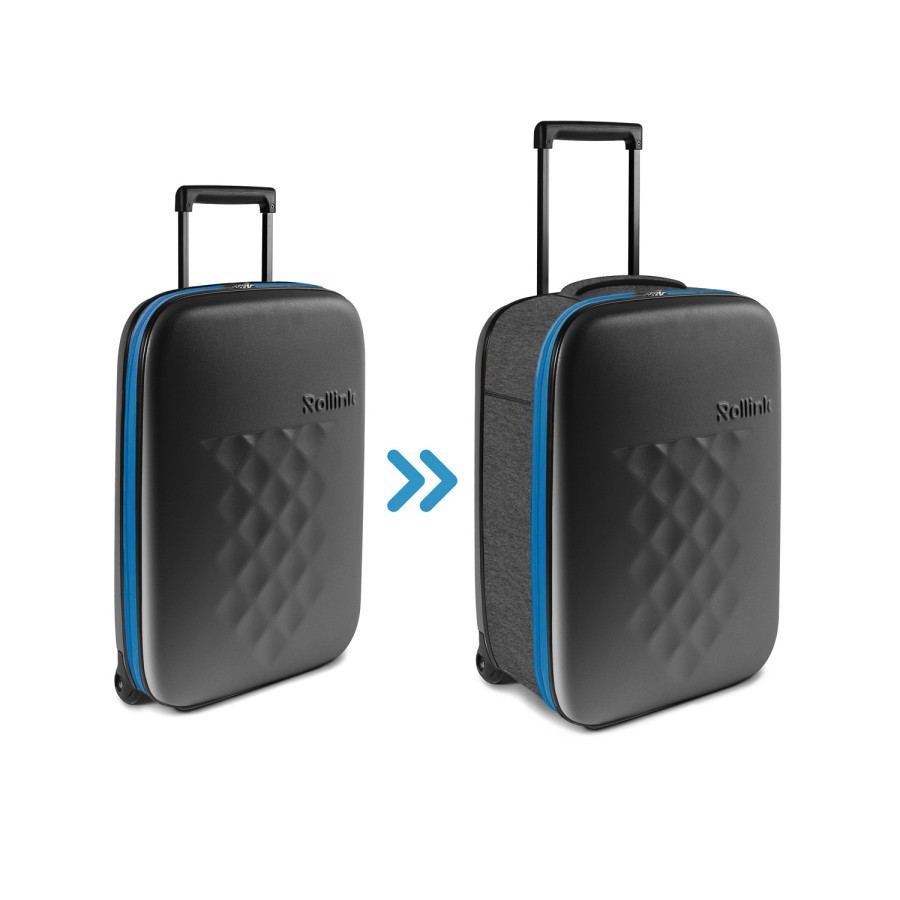 Чемодан складной Rollink Earth 55x40x20 см, 2 колеса, черный/синий