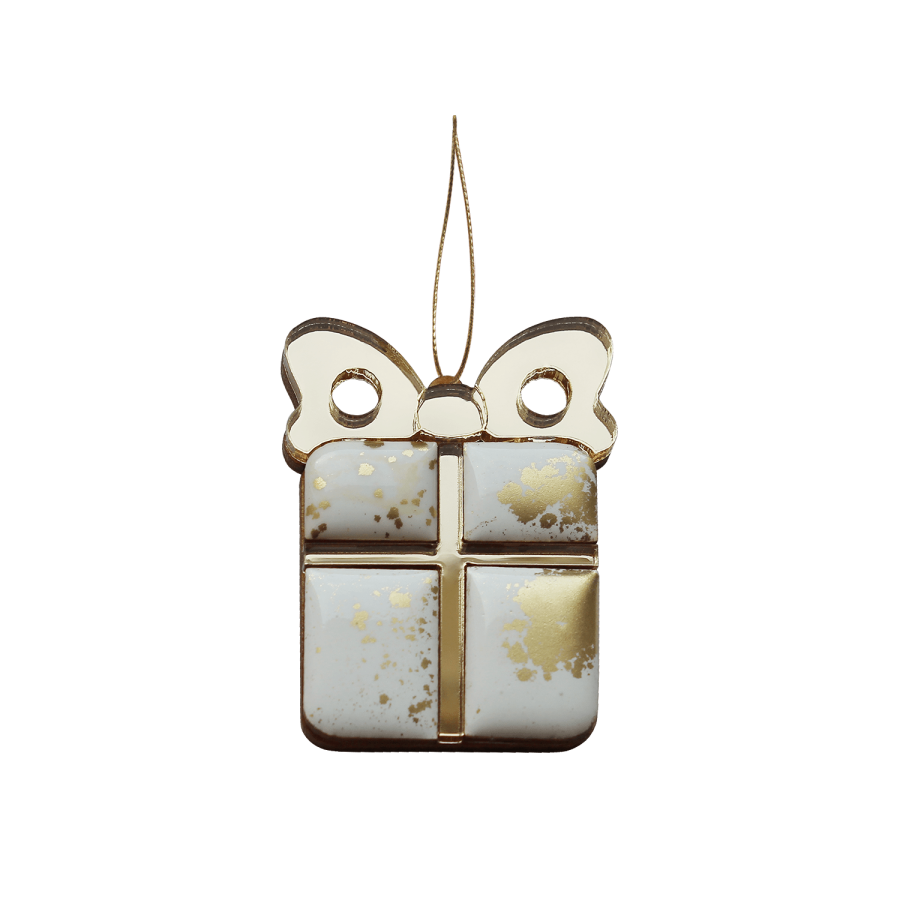 Ёлочная игрушка Подарочек (белый с золотым)