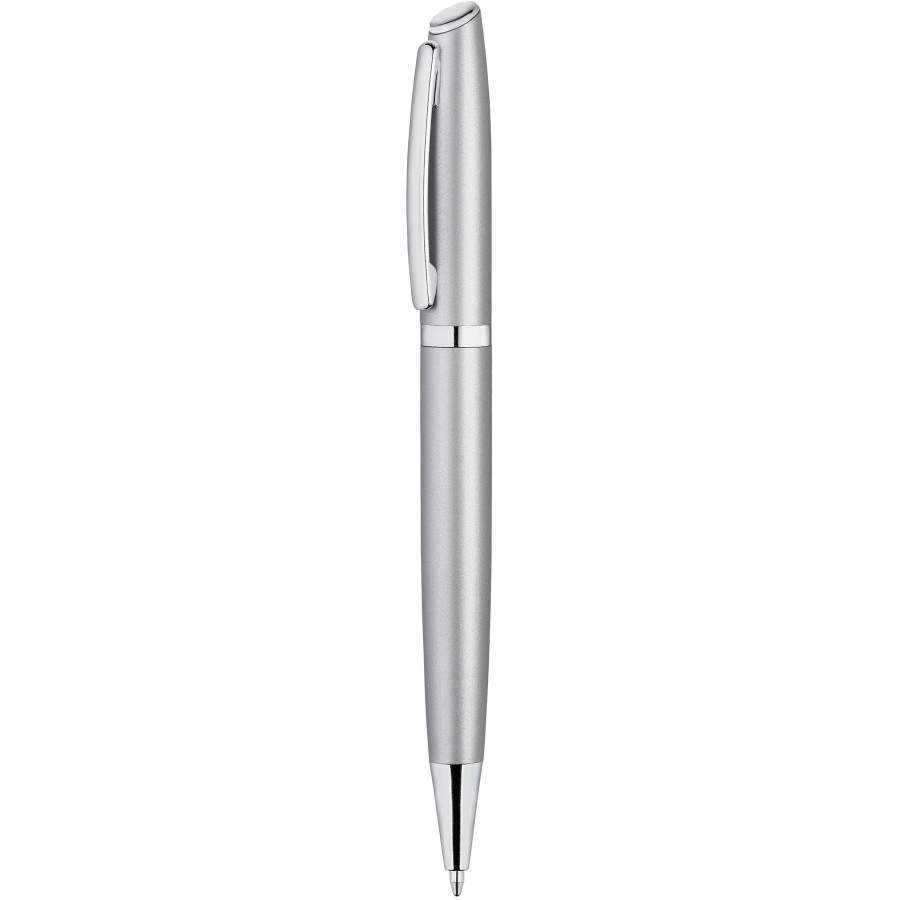 Корпус металлизированный матовый. Наконечник, кольцо и верхняя часть пластиковые, хромированные.