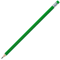 Деревянный круглый карандаш с глянцевым цветным корпусом с ластиком в цвет корпуса.