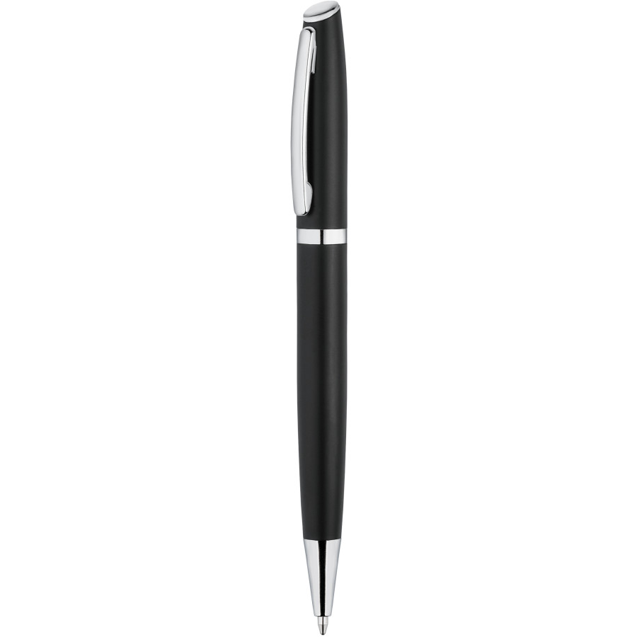 Корпус металлизированный матовый. Наконечник, кольцо и верхняя часть пластиковые, хромированные.