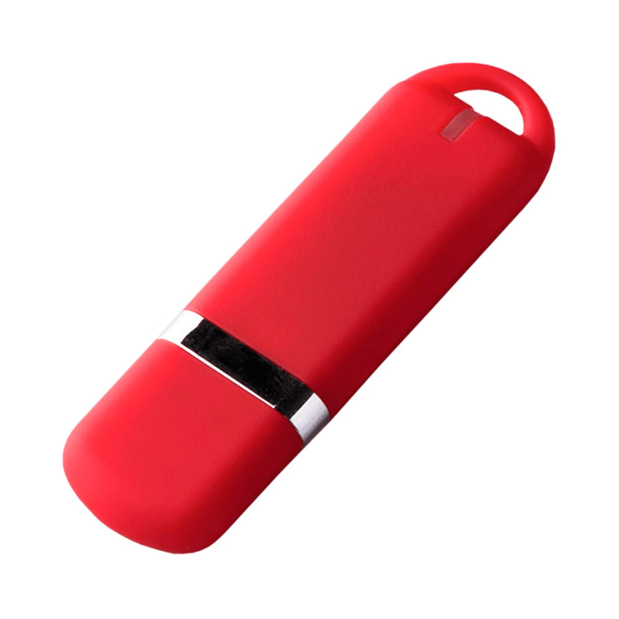 Пластиковая флешка с покрытием soft-touch (софт-тач) с пластиковой хромированной фурнитурой.