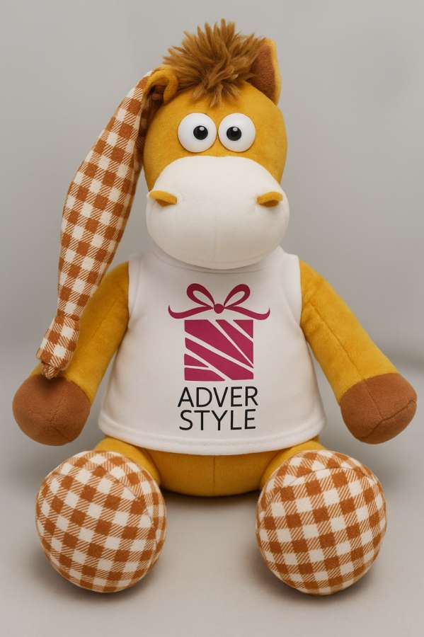 Данная лошадка уже готова, мы можем дополнить ее брендированием. Но мы также можем отшить игрушки полностью по вашим параметрам, все подробности можно уточнить у менеджера.