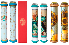 Большой выбор калейдоскопов с использование следующих материалов: металл, кожа, дерево, полноцветная печать, цветные стекла, кракелюрный лак, финишное стекло, ручная роспись. Также, возможно изготовление по индивидуальному дизайну. Доставка в пределах МКАД бесплатно.