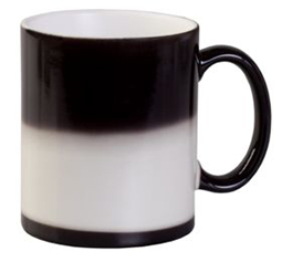Например, кружки-хамелеоны. Мы можем нанести под слой исчезающей краски фото сотрудников вашего коллектива. При нагревании верхний слой исчезает и фотография появляется ниоткуда!