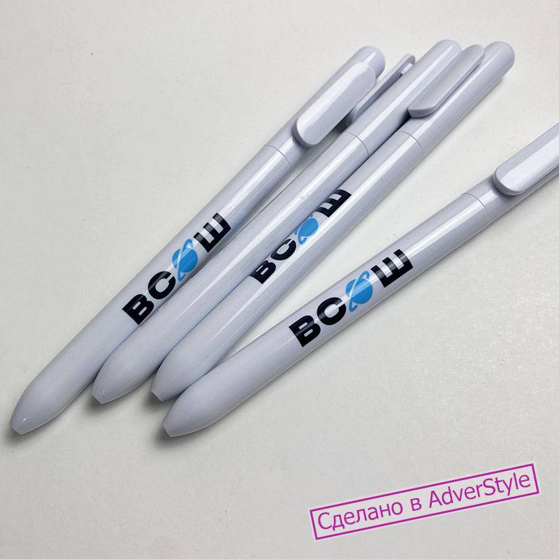 Обычно заказывают ручки нейтрального цвета: белый, серый, черный с нанесением логотипа в фирменных цветах компании, иногда заказывают ручку фирменного цвета.