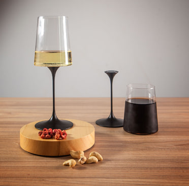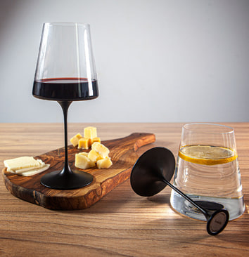 За счет этого получается сразу два формата в одном: с ножкой — изящный бокал для вина или шампанского, без ножки — стильный стакан для других напитков.
